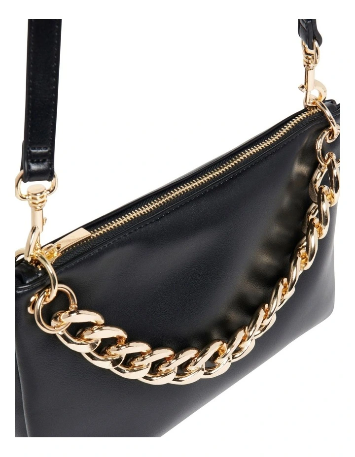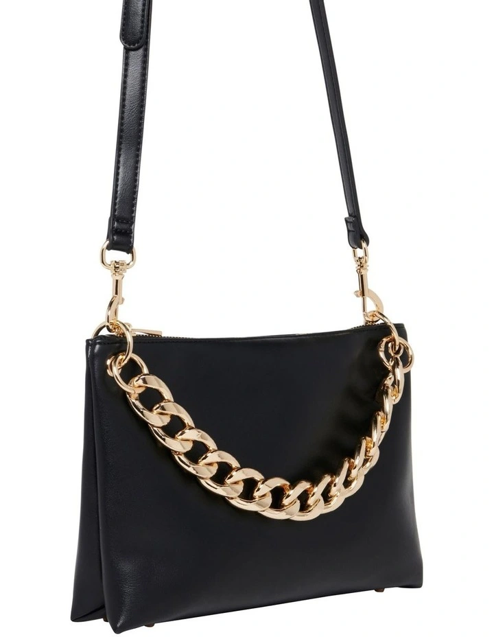 The soft texture of the Slinks Crossbody Bag fashioned with a chunky chain handle is a stylishly convenient option for running errands or to cradle under your shoulder at this seasons after dark events. The interior features ample space for this classic mid-size crossbody bag, complete with an internal zip and flat pocket. Equipped with an adjustable and removable crossbody strap, metal feet on the base and a top zip closure to keep your precious items safe. The sleek silhouette of slinks will add an elegant trend-forward touch to your most classic outfits.