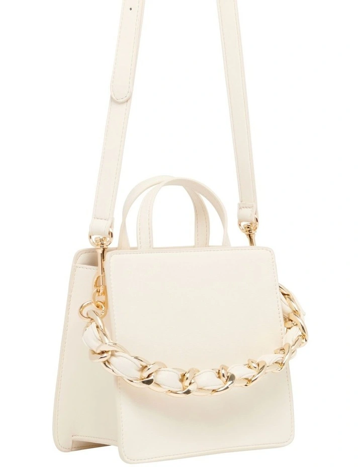 The structured and boxy Taz Crossbody Bag is a sturdy staple for summer gallivanting. A deep interior complete with a zip and card pocket can be found inside the zip top fastening, toting your everyday essentials to your daily plans. Complete with two top handles and a removable, adjustable crossbody strap, Taz is a versatile styling option for the warm weather season. The removable gold accented, intertwined chunky chain across the front creates a burst of style, making a statement within your most casual looks.