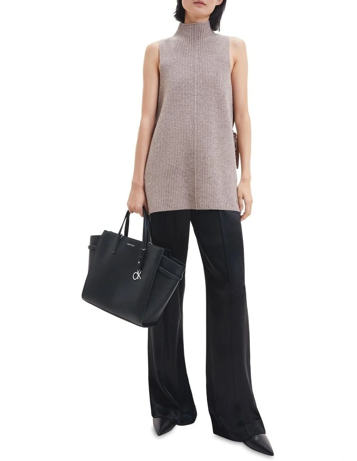 The tote bag exterior is crafted with 100% sustainably sourced materials, excluding trims.