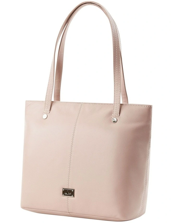 Cellini Nelson Leather Tote in BLUSH. Silver hardware. Top zip closure. A back zip & 2 slip pockets inside. Back zip wall pocket. Also available in CREAM. Fabrication Leather.