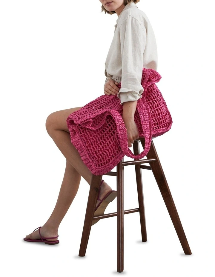 Head out in style with our Summer Textured Tote. The perfect size to carry everything you need for a day out, this on-trend bag is made from paper raffia and features a netted design. Style with The Essential Linen Tank and Rise Denim Short.