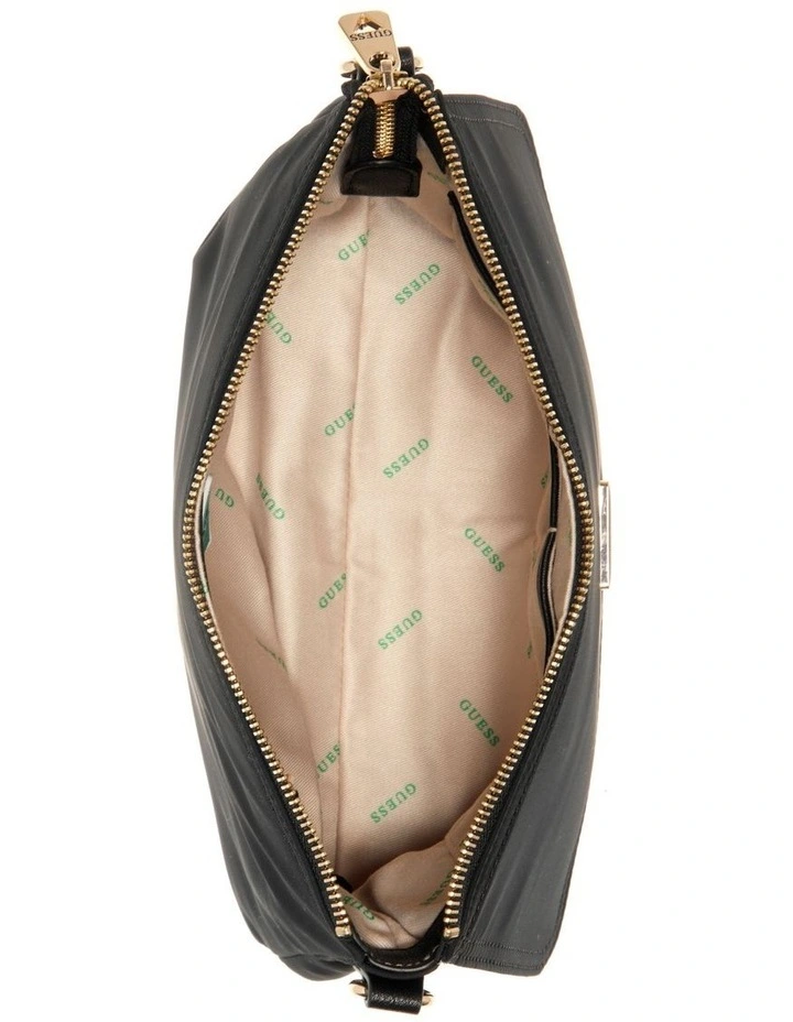 Compact, cute and compatable with anything,, the Eco Gemma Top Zip Shoulder Bag will have you sorted this season. Spacious storage paired with a fantastic mini storage attatchment, this bag has it all. Gold hardware and a fine gold logo, make a statement with the black colourway.