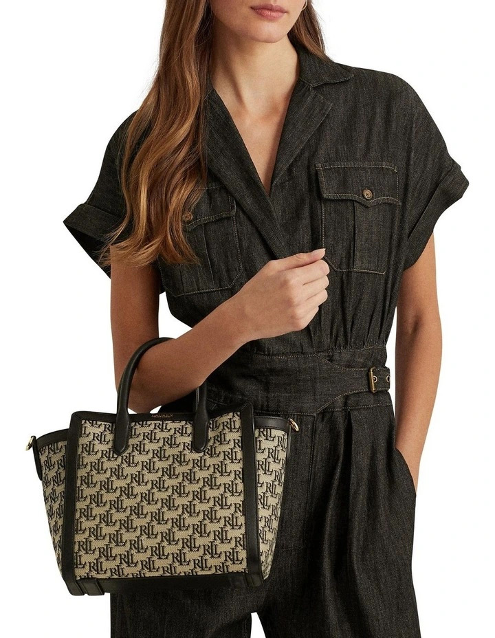 Fabrication: Shell: cotton, polyester. Trim: leather. Lining: polyester.