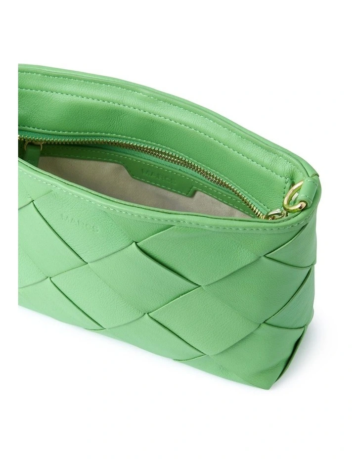 Endlessly appealing in crisp apple green, this bag uses buttery soft leather to create a woven effect, to fasten securely at the top with a gold metal zip. Lined with recycled cotton, the bag is completed by a large Marcs branded zip pull, and a long detachable strap that allows it to be worn either as a shoulder bag or as a clutch.