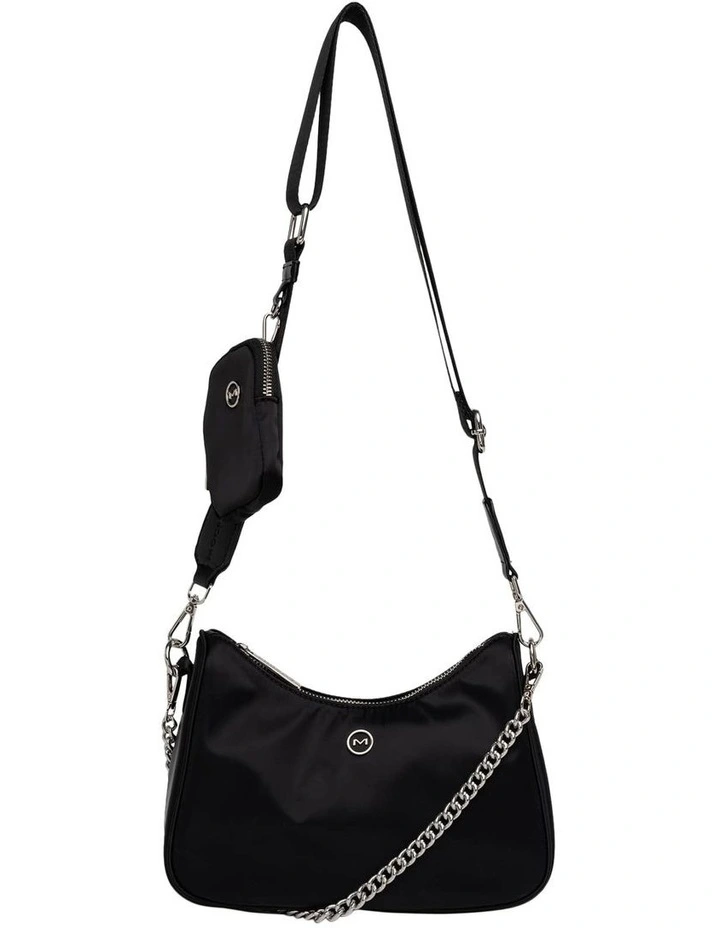 This mini shoulder bag channels a classic 00′ style. Designed with Nylon detailing, a top zip closure and two straps, this style can be worn as a shoulder bag or crossbody. Ebby has just enough room for everything you need for the weekend of a night out.