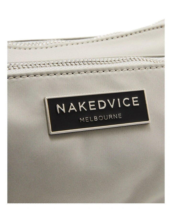 The Hunter Kia Steele by Nakedvice is a nylon handbag with silver hardware. Sporting a classic utility style silhouette, The Hunter Kia Steel has two separate compartments with zip closure and an internal zip pocket to keep you organised. Complete with a contrast adjustable strap and our signature Nakedvice Melbourne plaque. Perfect for wearing as an everyday cross body bag.