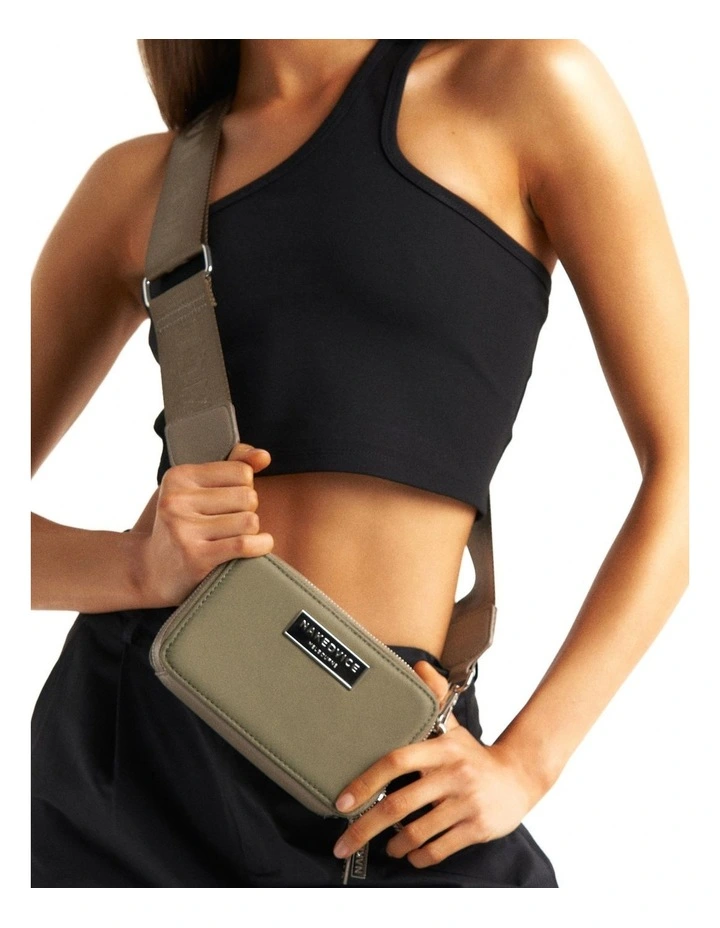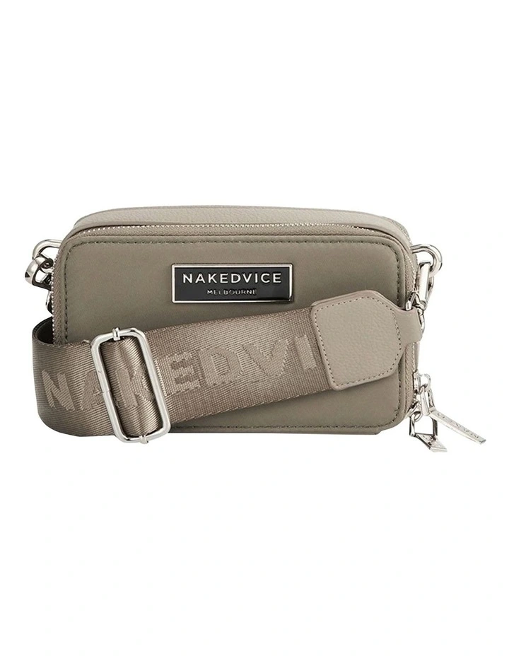 The Lexie Black in Sage by Nakedvice is crafted from smooth Sage nylon, vegan leather and silver hardware. Featuring a compact double compartment with zip closure and an adjustable Nakedvice branded strap. Complete with our iconic Nakedvice Melbourne plaque, The Lexie is perfect for wearing as an everyday cross body or shoulder bag.
