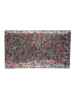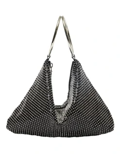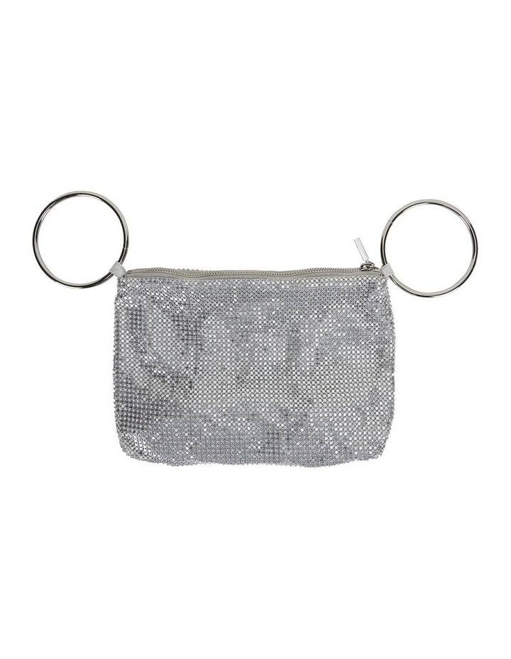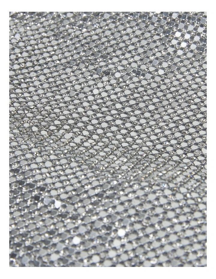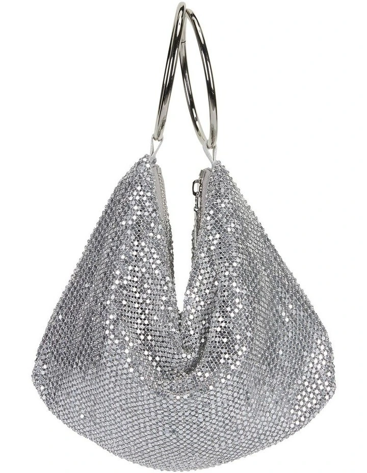 Dressed with double circular handles, a crystalised metal mesh upper and zipper tip closure, this handbag will have you shining all night long!