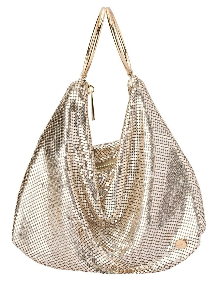 Carry the SHAR Mesh Handle Bag to add a touch of glamour to your event looks. It has a metal mesh exterior and includes a long chain to transform it into a cross body bag making it the perfect choice for a festival or a casual weekend brunch.