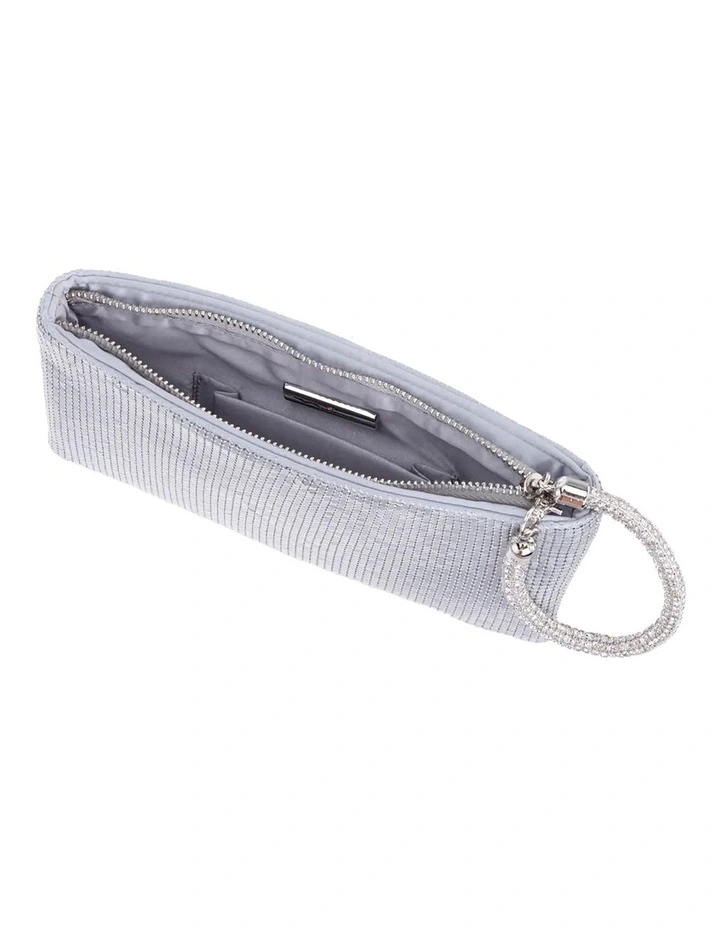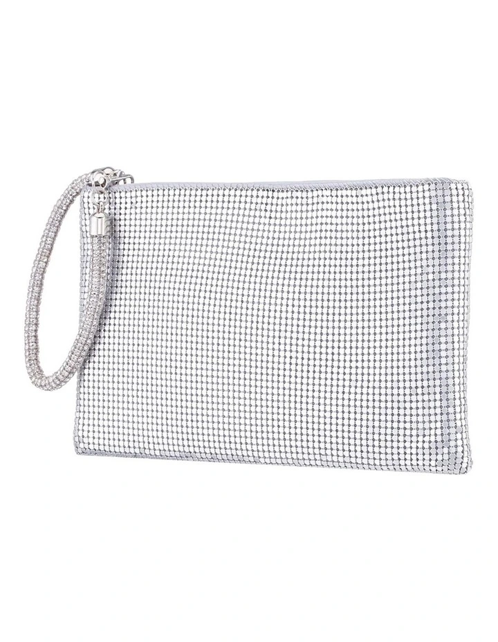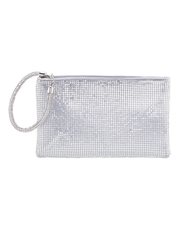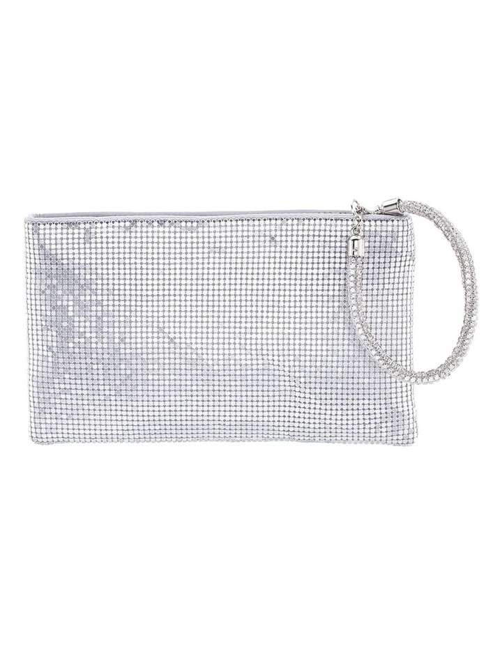 This mesh clutch bag with crystal wristlet strap is both functional and fashionable.