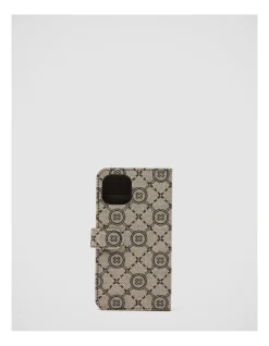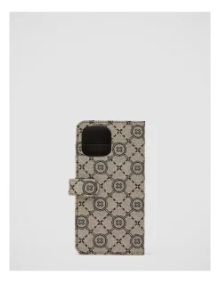 Mimco Mim-gram Flip Case For Iphone 13-13 Pro In Black Light Gold