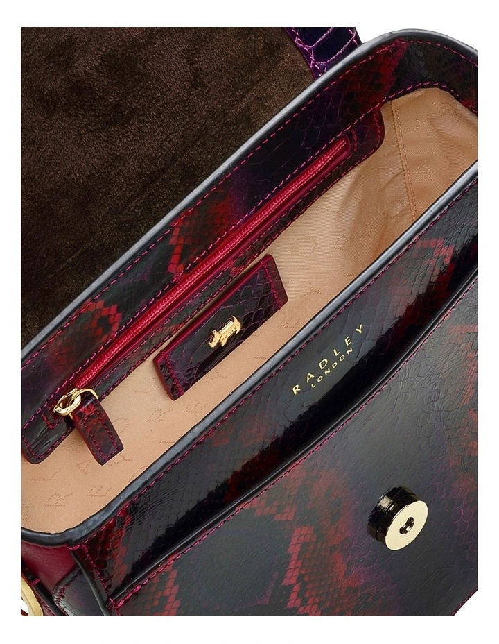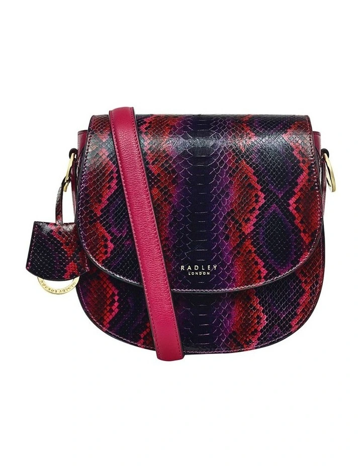A new look for our Liverpool Street 2.0 flapover cross body bag. This edition is crafted our party-ready faux python-textured leather, with the contrast of vibrant smooth leather trims. Designed with all the same details, like the painted cut edges and structured scoop shape. A favoured, signature bag, now a lot more colourful.