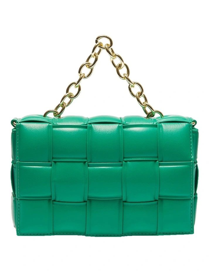 Complete any contemporary ensemble with BAMBI. The boxy profile is made with a plump synthetic upper to a padded woven style, featuring a magnetic front flap that opens to a roomy interior. Carry it either with the slender strap or the gold chain-link for a luxe mood.