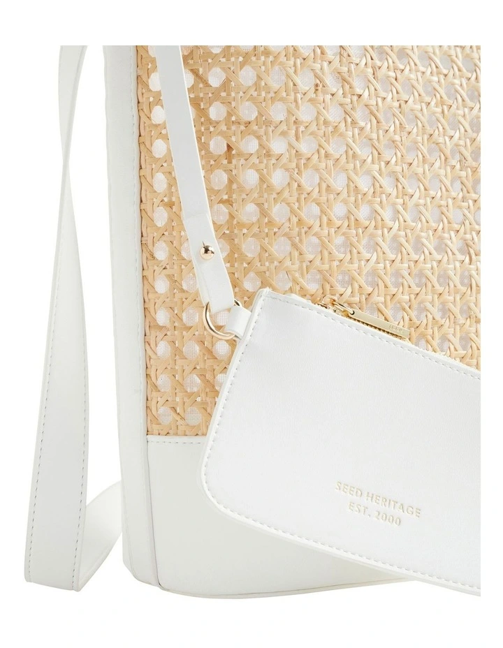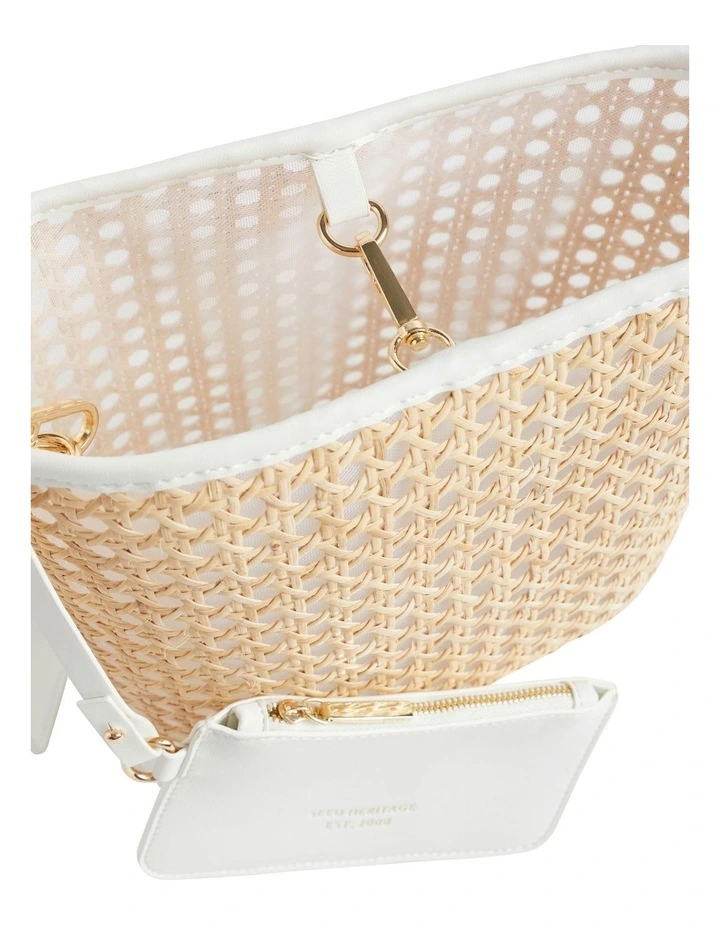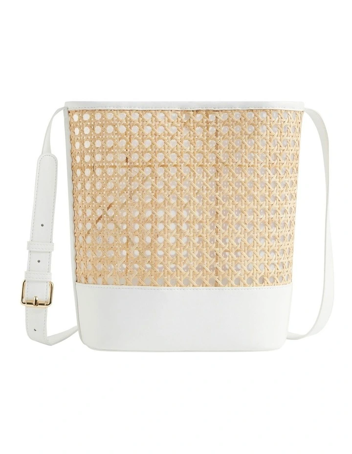 Crafted from natural rattan in a simple shape, this cross body bag is a summer essential. It features a long adjustable strap and closes with a clip. The bag is fully lined.
