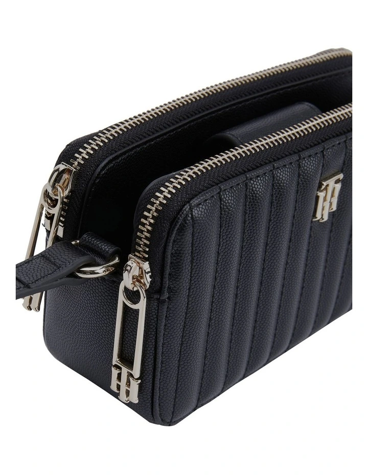 This compact camera bag has an elegant quilted design, and two zipped compartments to make organising your things easy.