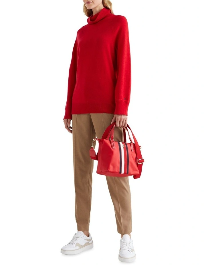 Finished with signature tape detailing and the monogram plaque, this compact tote makes a bold statement, Tommy Hilfiger style.