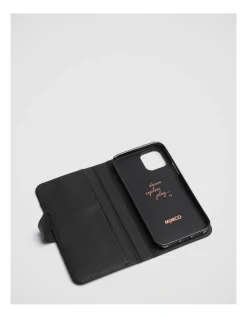Mimco Hendrix Flip Case For Iphone SE-8-7-6S-6 In Black Gunmetal